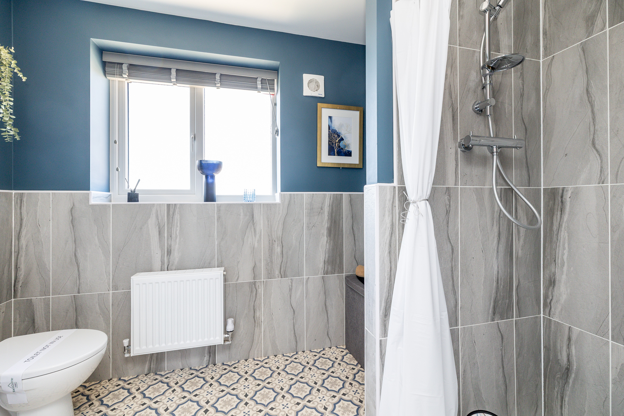 Upstairs, you’ll find three well-proportioned bedrooms. The main bedroom is a true retreat with its own en-suite shower room, while bedrooms two and three share a stylish family bathroom and don’t forget that handy storage cupboard on the landing.